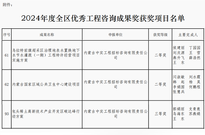 2025-04-1610367 次2025年4月16日,内蒙古工程咨询协会公布了2024年度优秀咨询成果奖获奖单位名单,我司取得两个二等奖和一个三等奖,我司专业能力和服务质量再次获得行业的认可。此次获奖,不仅体…